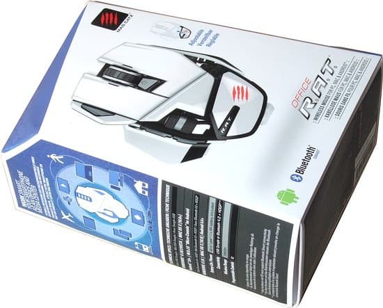 Коробка Mad Catz Office R.A.T. выполнена в стилистике коробок игровых мышей компании, выделяющейся скошенными гранями и светлым оформлением. Производитель, наконец-то, начал обращать внимание на локализацию, пусть пока и в виде надписи мелким шрифтом, сообщающей о нахождении инструкции по установке внутри коробки.