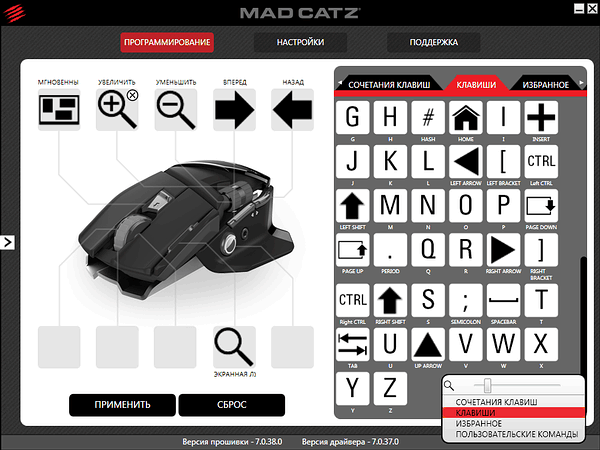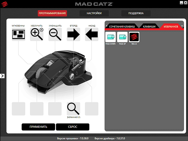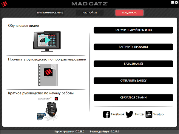 В отличие от производителей, унифицирующих ПО для своей периферии, Mad Catz предлагает скачивать и устанавливать программу и драйверы индивидуально для каждой модели в зависимости от операционной системы.