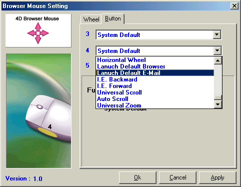 Определение пользовательских функций для этих кнопок не предусмотрено, но диапазон функций, предлагаемых драйвером, весьма широк и, я думаю, не очень привередливому пользователю их будет вполне достаточно. Среди них есть и открытие/закрытие окон, и запуск почтового клиента и интернет браузера, и Connect To Internet, и многое другое. Всего для дополнительных кнопок доступно 56 функций.