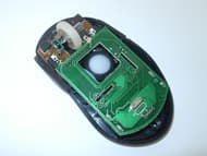 К сожалению, внутри рассматриваемой мыши не все так хорошо, как того хотелось бы. Электрическая схема размещается на двух печатных платах. На нижней, меньшей по размеру, установлены микропереключатели для всех кнопок и механический датчик вращения колеса прокрутки. Конечно, установку механического, а не оптоэлектронного датчика можно оправдать меньшей стоимостью и стремлением к снижению энергопотребления мыши, но наработка на отказ у таких датчиков, безусловно, невелика. Это и было первым, что мне не понравилось внутри Maxxtro Radio Wireless Mouse. Вторым поводом для весьма значительного недовольства явилась верхняя, большая по размеру, печатная плата. Если быть точнее, то я был недоволен качеством ее изготовления. Конструктив мыши таков, что для установки этой платы создателям пришлось предусмотреть в ней два выреза для дисков оптико-механической системы. Вот эти-то вырезы и были самым большим недостатком, обнаруженным мною в Maxxtro Radio Wireless Mouse. Вырезанные крайне неаккуратно, они имели по своим краям великое множество больших и маленьких заусенцев. И за эти заусенцы диски, естественно, постоянно цеплялись слотами. Иногда диски даже заклинивало и, как следствие, курсор вообще переставал перемещаться по одной из осей. Заклинивание случалось нечасто, а вот нервное поведение курсора из-за притормаживания дисков заусенцами было почти постоянным. Мне не оставалось ничего иного как, для продолжения испытаний, вооружиться скальпелем и аккуратно устранить все неровности по краям вырезов. Не думаю, что нормальный пользователь рассчитывает получить конструктор «сделай сам» в то время как покупает с виду вроде бы законченное устройство. Однако я тешу себя надеждой, что подобный брак — явление нечастое, к тому же, теперь вы знаете, что делать, если ваша Maxxtro Radio Wireless Mouse ведет себя издерганно нервно.