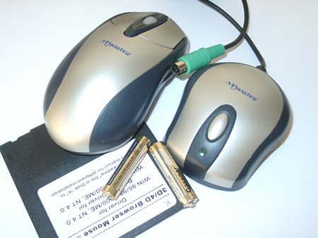 Как можно заметить по фотографии, помимо мышки, приемника и элементов питания, в комплект также входит 3.5” диск с драйвером (для Win9x и NT4.0). Программирование двух дополнительных кнопок, благодаря которым производитель позиционирует Maxxtro Radio Wireless Mouse как 4D мышь, и кнопки расположенной под колесом прокрутки возможно только после установки этого драйвера.