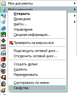 В более современных операционных системах, например семейства Windows XP, частоту опроса мыши на PS/2 порту можно регулировать средствами самой системы. Делается это так. Вызываем «Свойства» значка «Мой Компьютер» на «Рабочем столе».