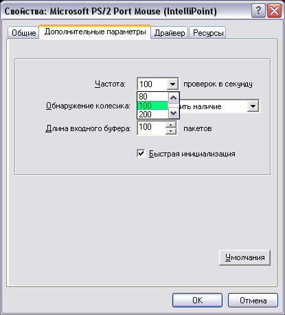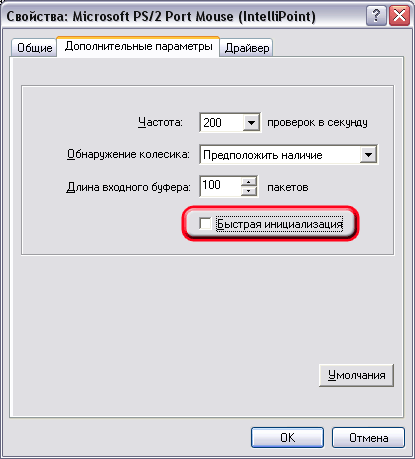 Если у вас мышь отличная от оригинальной Microsoft, то иногда имеет смысл отключить опцию «Быстрая инициализация». Иначе мышь, возможно, будет работать на своей частоте опроса по умолчанию, независимо от выбранной вами частоты опроса по интерфейсу PS/2.