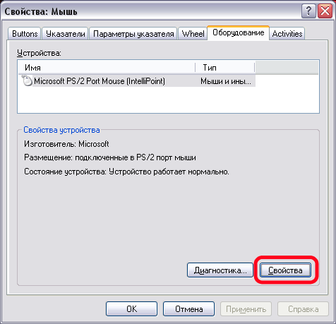 В открывшемся окне дважды кликаем на обозначении установленной мыши или вызываем ее свойства.