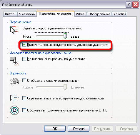 Установка повышенной точности указателя сделает нашу мышь намного более точной при наведении курсора, хотя и за счет некоторого снижения скорости перемещения указателя. Однако чтобы убедится, насколько важна еще и достаточная частота опроса мыши, просто попробуйте поработать на PS/2-мыши с частой опроса 20 Гц, при повышенной же точности наведения указателя. Даже при низком разрешении экрана, когда значки рабочего стола и пункты системных меню достаточно большие, простая «навигация» по ним покажется ужасно дискомфортной, по сравнению даже, со, скажем, работой при частоте опроса в 60 Гц. Но не думайте что 60 Гц — это слишком много :) Разницу между 60 и 80 Гц опроса также легко заметить (конечно, это еще и от мыши зависит).