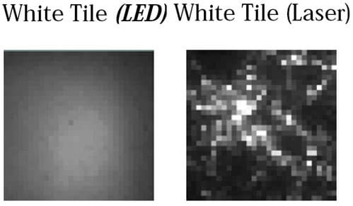 И действительно, если мы посмотрим на реальные снимки поверхности, сделанные обычной светодиодной оптической системой, и системой с использованием лазера, то увидим, что «лазерный» вариант куда более контрастен — отличия между темными и яркими участками снимка более значительны. Безусловно, это может существенно облегчить работу оптическому сенсору и, возможно, будущее именно за мышами с лазерной системой подсветки. Но назвать подобные «лазерные» снимки в двадцать раз более детализированными вряд ли можно. Так что это еще один «новорожденный» миф.