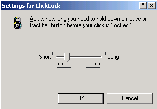 Можно настроить длительность нажатия левой кнопки мыши, после чего левую кнопку можно отпускать, мышь будет "уверена", что вы все еще держите кнопку нажатой. Для отмены этого эффекта необходимо еще раз нажать левую кнопку мыши.