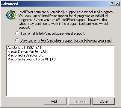 Разумеется, имеются программы, не совместимые в полной мере с IntelliPoint. В этом случае можно в них отключить поддержку колесика.