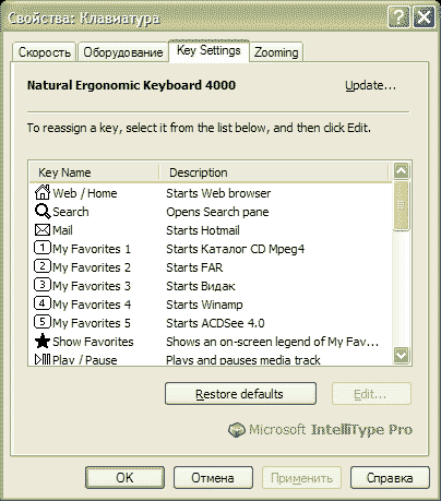 Заодно и IntelliPoint (мышиный) обновил с 4-й версии до 5-й. Отличие нашёл только одно — в стандартных командах появился Magnifier, то есть экранная лупа, которая, будучи присвоена одной из клавиш, может оказаться иногда полезной. Специфичные для разных программ действия для различных клавиш никуда не делись, что очень хорошо (притом, что и USB MSIME 1.0, и PS/2 A4 Tech RP-680 у меня установлены как MSIME 4.0, который с tilt wheel). Только при замене драйвера всё по новой надо настраивать — единственное неудобство. В целом — лучше драйверов для мыши и клавиатуры я не встречал.