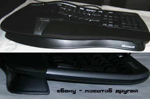 Ещё была более дешёвая Elite, у которой не было дополнительных кнопочек, но имелись абсолютно изуверские блоки клавиш редактирования и управления курсором. Второй не прижился, а кнопки редактирования, выровненные по вертикали (в самом неприятном варианте — с большим Delete и убиенным Insert) встречаются до сих пор и не только у MS, но даже и у Logitech, не говоря о менее значимых производителях. В Pro меня не устраивала цена, а в Elite раскладка; так и сидел со своей Chicony, пока не увидел MS Natural Ergonomic Multimedia.