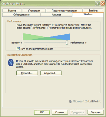 Во время тестирования использовалась версия 6.1, работоспособная как под Windows XP, так и под Vista, версии 32-бит. Более подробно описано в обзоре Microsoft Wireless Laser Mouse 6000, но есть одна интересная особенность, на которой стоит остановиться особо. Вот как выглядит вкладка Wireless.