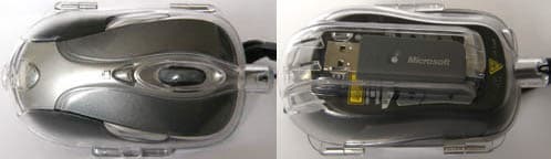 Замечательная мысль пришла конструкторам или маркетологам — вложить в комплект футляр для мыши. Конечно, обычно такие зверьки вдали от ноутбуков не водятся, а ноутбуки обычно живут в просторных портфелях, где маленькой мышке всегда есть место. Но при проведении презентаций ПК обычно стоит где-то рядом с проектором, и не обязательно личный, а докладчик может сидеть в зале и ходить в фойе во время других выступлений и перерывов. Можно, конечно, положить мышь в карман. Но что-то подсказывает, что перед запуском в серию дизайн обкатывали сотрудники компании, проведшие огромное количество лекций, и в их головы пришла светлая мысль, что в футляре грызуну спать будет спокойнее. Если сунуть в карман джинсов жёсткий диск, а в другой пачку DVD, то на внешнем облике это никак не отразится, а для кармана строгого костюма мышка уже не подойдёт, испортит внешний вид докладчика, а он тоже играет роль в презентациях. В результате появился ремешок для ношения футляра с мышью и трансивером (вдруг на общем ПК нет Bluetooth) на запястье.