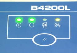 Панель режимов работы принтера OKI B4200L очень проста и не требует много времени, чтобы привыкнуть к разнообразию ее индикации.