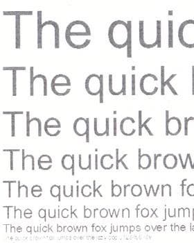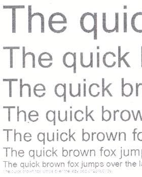 | Распечатка контрольной фразы шрифтом Times 4х увеличение, черновой режим, экономия тонера | |