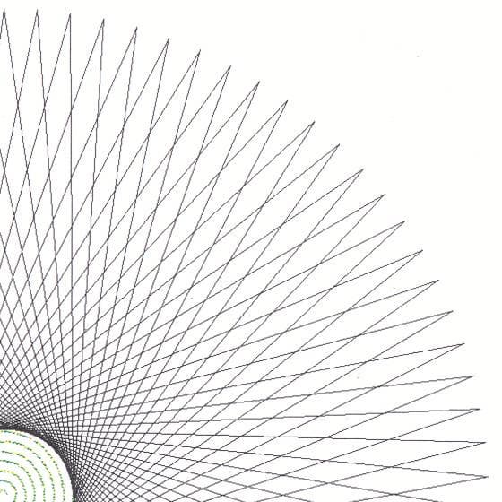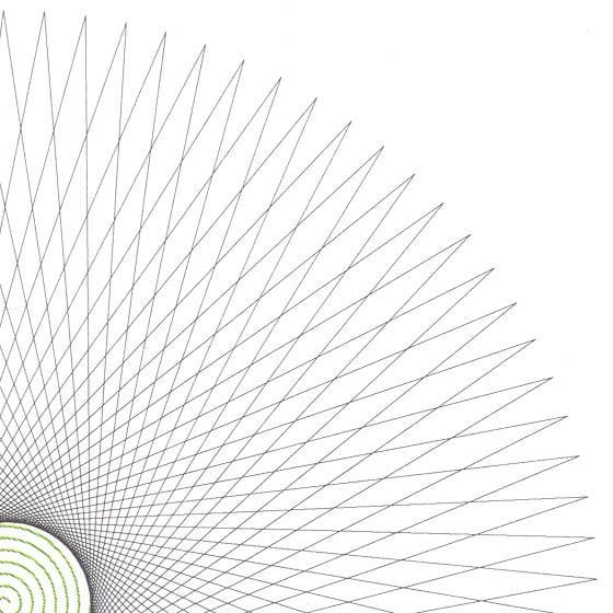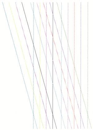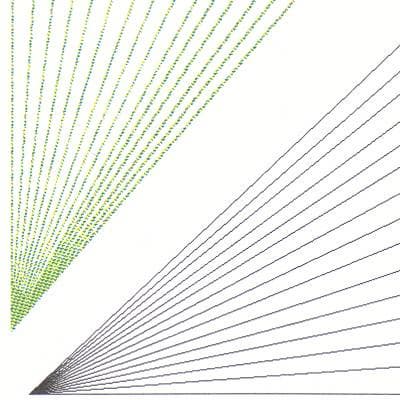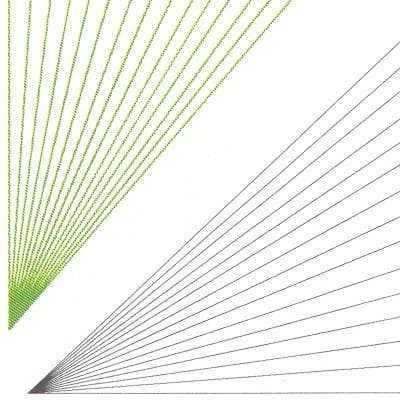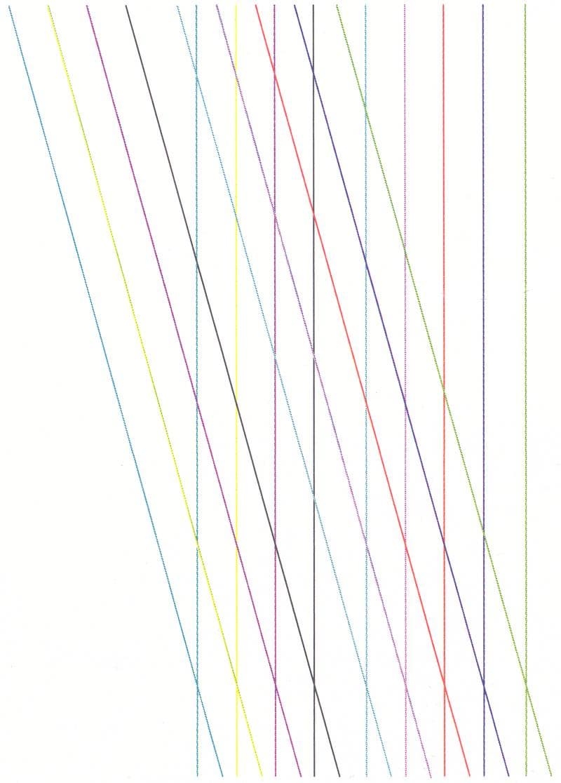 - Распечатка универсальной тестовой таблицы (здесь — файл-оригинал в векторном формате CDR программы Corel Draw). Таблица несколько подработана и усовершенствована, специально для тестирования качества печати градиентной заливки и векторной графики цветными лазерными принтерами. Например, в растровых градиентных одноцветных модулях применена заливка в 512 шагов (а не 128, как обычно); зеленые радиальные линии служат для проверки качества совмещения желтого и бирюзового цветов; в центре 90-угольной звезды появилась спираль толщиной 1 pt, также зеленого цвета