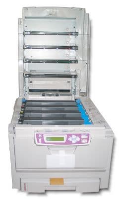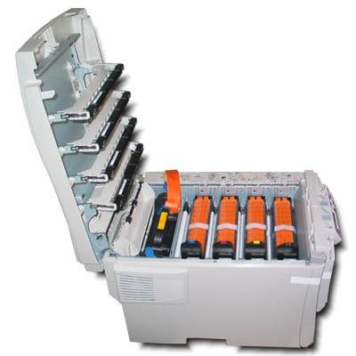 Главной особенностью цветных принтеров серии C5000 является фирменная однопроходная технология печати. Отсюда и непривычно высокая для моделей этого класса скорость печати в цвете: в то время, как принтеры от конкурентов последовательно, за 4 оборота, «наматывают на барабан» тонер с четырех картриджей, модели серии OKI C5000 наносят все четыре цвета за один проход.