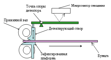Со всеми предложенными в процессе тестирования типами бумаг — от 80 г/м² до 250 г/м² принтер справился без замечаний. Здесь, думаю, самый уместный момент описать технологию автоматического детектирования толщины носителя. Приведу для начала слайд, схематически описывающей механизм автоматического контроля толщины бумаги: