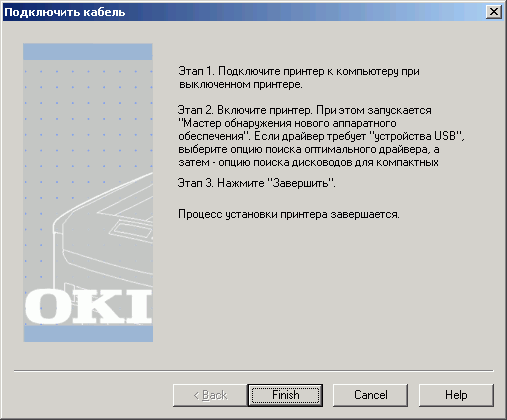 Процесс установки драйверов прост и необременителен. Указываем язык интерфейса, тип подключения принтера — локальный или сетевой, выбраем интерфейс подключения, тип драйвера да название модели.