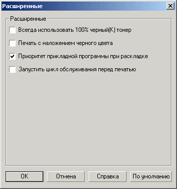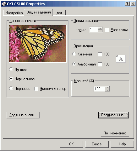 Установки «Лучшее», «Нормальное» и «Черновое» соответствуют разрешению 600 х 1200 dpi, Fast 600 х 1200 dpi и 600 dpi. Fast в данном случае означает, что в этом режиме графические данные передаются в принтер с разрешением 600 dpi, а уже в нем, после получения соответствующей команды, эти данные методом экстраполяции преобразуются в растровый массив с разрешением 600 х 1200 dpi, который и уходит на печать.