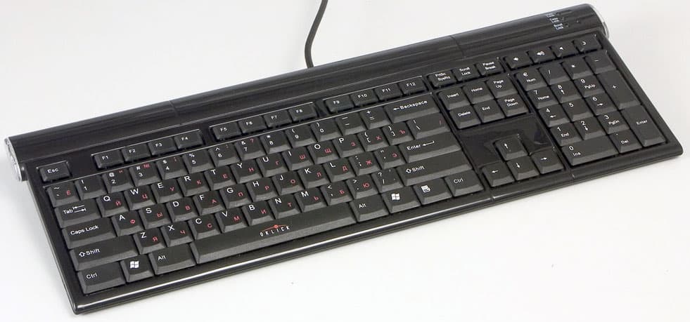 Правда, выбор не так-то прост. Поскольку подобные клавиатуры по-определению несколько дороже своих «классических» родственниц, большинство производителей предпочитает выпускать на базе данной технологии достаточно функциональные модели, зачастую с нестандартной раскладкой. Привыкнуть к подобной клавиатуре несложно, но некоторых они просто пугают. Недаром у нас в конференции давно уже существует тема, посвященная выбору slim-клавиатуры со стандартной раскладкой и минимумом дополнительных кнопок. Рассматриваемая сегодня Oklick 520S (а буква S в маркировке клавиатур компании сразу дает понять, что высокой функциональности от нее ожидать не стоит, поскольку относится она к классу максимально компактных моделей — много дополнительных кнопок просто не поместится) как раз к таковым и принадлежит, так что вызывает достаточно большой интерес.