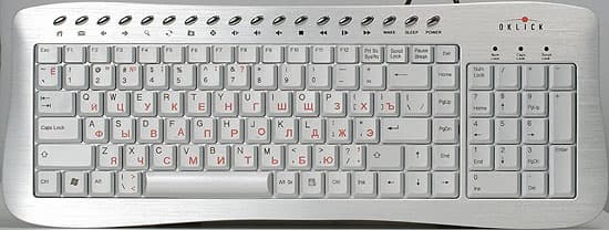 Не обошел данный процесс и компьютерный рынок, особенно сильно проявляясь в области корпусов и периферийного оборудования. Особо дорогие, штучные, изделия нередко выполняются из ценных пород дерева, и стоят… вплоть до четырехзначных сумм в мировых валютах: материал, эксклюзив, да еще и ручная работа ввиду сложности форм. Но есть и «природный» материал, пригодный для массового производства, которое, по определению, недорого — алюминий. Смотрится нестандартно, но вполне в стиле хай-тек. Разумеется, клавиатуры и мониторы в алюминиевых корпусах по цене с обычной продукцией конкурировать не могут, а о корпусах и говорить не приходится, однако одинаковая цена и не требуется — тогда эксклюзивности не будет. Впрочем, в ряде случаев переплачивать придется не так много. Пару таких случаев мы сегодня и рассмотрим — не так давно на рынок под маркой Oklick начали поставляться две клавиатуры в алюминиевых корпусах. Точнее, правда, — в корпусах с использованием алюминия: из данного металла изготовлена только верхняя часть корпуса — низ и кнопки из пластмассы. С точки зрения логики, это правильнее — нижнюю сторону клавиатуры все равно особо никто не видит, тонкий металл мог бы и гнуться (пластиковое «дно» жесткости немного добавляет), а алюминиевые кнопки оказались бы слишком дорогим и неудобным из-за большей тяжести «извращением». Пусть будут пластиковыми, но окрашенными в металлический цвет.