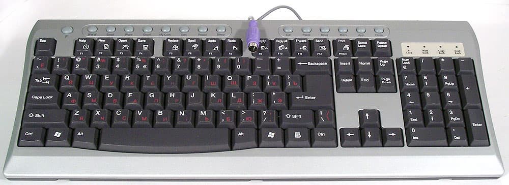 С компьютером клавиатура соединяется полутораметровым тонким кабелем с разъемом PS/2 на конце. Более современный вариант не предусмотрен — в офисе все-таки это основной стандарт и будет таковым еще немало времени, однако возможна комплектация клавиатуры и переходником PS/2-USB. Дешевле было бы сделать совсем наоборот, однако было принято достаточно логичное решение, что большинство пользователей должно иметь возможность обойтись без каких-либо переходников.