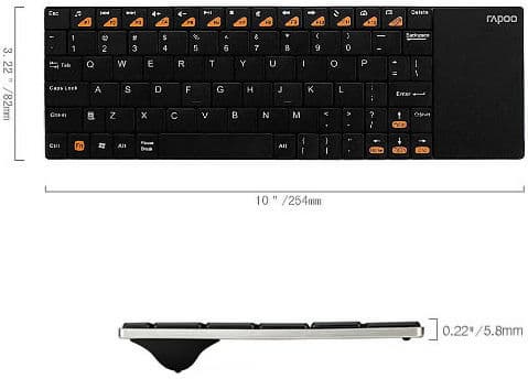 Размеры клавиатуры, по данным на сайте производителя, составляют 82×254×5,8 мм, однако официальные спецификации содержат перенятую у производителей мобильных телефонов хитрость в виде указания высоты клавиатуры по самой тонкой части, без учета батарейного отсека. При этом наблюдается небольшая путаница в показаниях: в тексте указаны 5,6 мм, тогда как на схеме можно увидеть цифру на 0,2 мм больше.