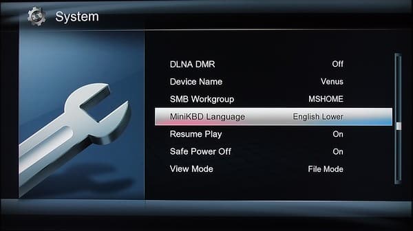 При тестировании использовались Dune HD TV-101 и Digma DMP-550. Поддержка клавиатур в этом сценарии ограничилась английским языком на стороне проигрывателей. Если с Dune HD TV-101 клавиатура заработала сразу, то с Digma DMP-550 потребовались манипуляции с настройками проигрывателя, разобраться с которыми в русском интерфейсе поначалу помешали ошибки перевода. Так пункт настроек, на английском недвусмысленно названный «MiniKBD Language» превратился в некий «Язык BD дисков».