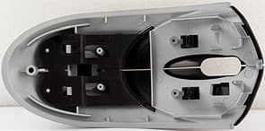 В-шестых, в наличии полная спинка в сборе с блоком основных кнопок. Кнопки такие же, как и в базовом комплекте поставки. При наличии некоторой аккуратности, их несложно вычленить из сцепки со спинкой. Эти детали закреплены между собой защёлками. Спинка не чёрная, а серебристо-серая. Рельефный логотип на ней не прозрачный, как в базовом варианте, а металлический, так что светиться он не будет, а будет слегка царапать руку.