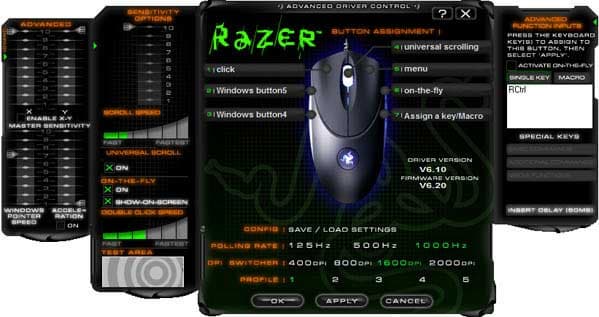 У Razer название драйвера совпадает с названием модели, которой он управляет. Здесь можно развернуть все настройки в единый широкий экран. Лёгкое лукавство одного скриншота заключается в том, что при активации расширенных настроек для действий, назначаемых кнопкам, воспользоваться другими настройками до сворачивания этой вкладки не получится.