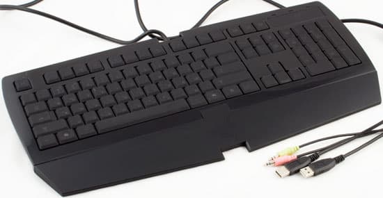 Цвет полностью чёрный. Подставка для запястий из матового пластика, можно отсоединить, крепление на саморезы. Пространство вокруг клавиш из глянцевого плексигласа естественно, быстро пачкается, но, будучи чистым, смотрится отменно. Клавиши, как и кнопки мышей от этой фирмы покрыты похожим на резину материалом. На нижней поверхности — шесть резиновых полосок, которые прочно фиксируют клавиатуру на столе. В дальней части — пара ножек, приподнимающих её примерно на 15 мм.