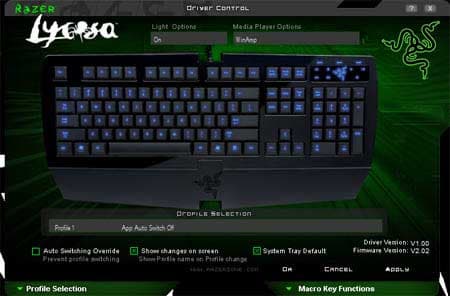 У Razer название драйвера совпадает с названием модели, которой он управляет. На момент тестов ещё не вышло прошивок, но возможность замены микропрограммы в дальнейшем есть. Была доступна только первая версия драйвера, она и применялась.