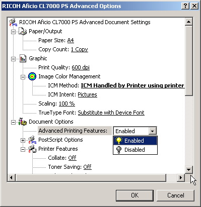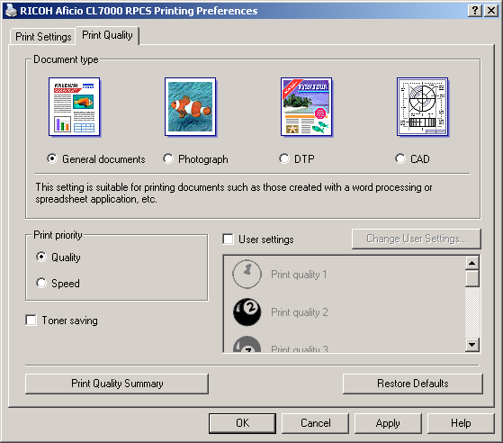 Выбор походящего драйвера печати Aficio CL7000 — дело ответственное. Как видно из перечня характеристик принтера, наряду с привычными для таких моделей языками PCL5c и PostScript3, модель также работает с языком RPCS (Refined Print Command Stream) собственной разработки Ricoh, основным преимуществом которого является повышенная на 30%, по сравнению с традиционными языками, скорость обработки данных и интуитивно понятный интерфейс. Помимо этого, с помощью настроек драйвера RPCS, пользователь также имеет возможность сохранить свои персональные настройки цветовой гаммы для дальнейшего их использования.