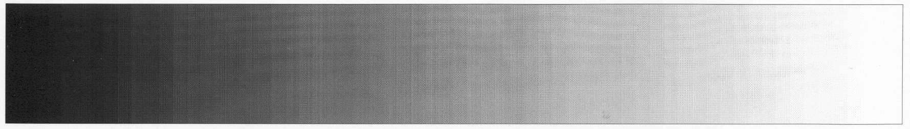 Увы, здесь не все так просто: если с распечаткой векторных отрезков и фигур проблем не возникло никаких, и комментарии к приведенным выше векторным фрагментам, думаю, излишни, лучшего и пожелать не приходится; то с печатью градиента не все так просто. Показав себя превосходнейшим образом при работе с крупными шрифтами — там, где были продемонстрированы отличные ровные края и качественная монолитная заливка, ML-1250, к сожалению, выдал не самый лучший образец печати градиентной шкалы серого.