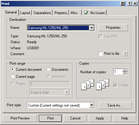 Работающим из-под неспециализированных приложений очень понравится закладка "Вывод" (Output), позволяющая, например, разместить документ на всю площадь листа, вывести на лист сразу несколько страниц или напечатать постер, разделив изображение на фрагменты.