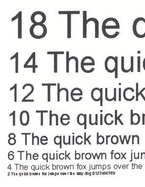 Тестовая распечатка шрифтовых материалов показала отличное качество везде, с прекрасным заполнением и четкими контурами букв. С четвертого кегля читаются любые шрифты, со второго — рубленые шрифты.