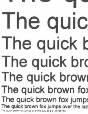 | Распечатка контрольной фразы шрифтом Arial 5х кратное увеличение, 300 dpi, режим экономии тонера | |