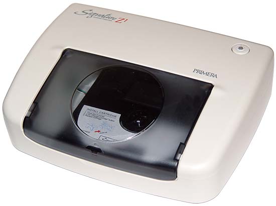 Да, действительно, компания Primera Technology выпустила принтер, способный наносить текст и графические изображения на гладкие поверхности обычных CD- или DVD-дисков методом термопереноса с разрешением 200 dpi.