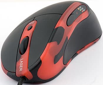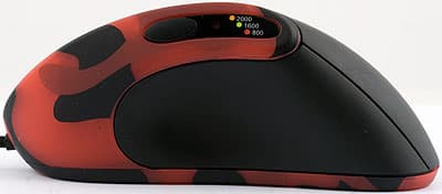 Да и разница в самих сенсорах, собственно, начала пропадать как только все производители даже бюджетной оптики вышли на тот уровень, который лет пять назад был свойственен разве что топовым моделям. Таким образом, «наращивание мускулов» в последнее время в основном похоже на накопление потенциальных возможностей и исправления поведения в особых сложных случаях, коих и без того немного было (потому так замедлился визуальный прогресс — если одно поколение сенсоров адекватно справлялось в 90% ситуаций, а обновленные модели эффективны в 91%, то найти этот процент становится крайне сложно; это не начало эволюции оптических мышей, когда все улучшения были кардинальны и сразу заметны). С этой точки зрения запас у ML-2000 впечатляющий. Сенсор способен работать с разрешением до 2000 точек на дюйм (или, что более корректно, отсчетов на дюйм), доступны и дополнительные значения — 400, 800 и 1600 точек на дюйм. Такого набора значений будет достаточно чтобы охватить все возможные сферы применения. Переключаются разрешения кнопкой на спинке, расположенной сразу за скроллером. Переключаются циклически — от меньшего к большему с «заворачиванием». Как я уже говорил, лично мне циклическое переключение между четырьмя-пятью разрешениями не кажется оптимальным, поскольку для того, чтобы опуститься на ступень ниже, на кнопку придется давить несколько раз, проходя почти полный круг. За это время в игре и убить могут. Оптимальнее был бы выбор между двумя, максимум — тремя режимами. Или другой вариант, в некоторых мышах реализованный (причем появился он как раз самым первым) — две кнопки, повышающие и понижающие разрешение. Либо, если уж хочется обойтись одним элементом управления, микроджойстик. Хотя при достаточной сноровке быстро переключиться можно и сейчас. На время освоения мыши неплохим подспорьем в «распознавании» текущего режима будет его индикация, сделанная достаточно грамотно. Индикатор расположен на левом боку (прямо за четвертой кнопкой), так что кинуть на него взгляд много времени не займет. При установленном разрешении в 400 точек на дюйм не светится, 800 — светится красным, 1600 — зеленым и при максимальном разрешении — оранжевым светом.