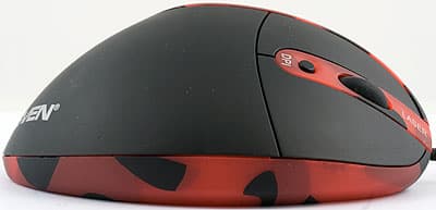 Поскольку никто не обещал каких-либо прорывов в плане количества кнопок и т.п. ничего такого и не наблюдается — функциональность мыши находится, скорее, на уровне даже чуть ниже среднего. Все, что нам предлагает производитель это: две основные кнопки (естественно), колесико прокрутки (только вертикальной — никаких «тилтов»), кнопку переключения разрешения (о ней чуть позже) и одну (даже не две) боковую кнопку. Мало? Для игр достаточно :) Никакие боковые прокрутки там не требуются, слишком уж большое количество кнопок — тоже. Боковых можно было бы и две поместить, но, поскольку управляются они одним пальцем, приходилось бы еще помнить, что там они у нас делают и на какую нужно нажимать прямо сейчас. А вот когда кнопка одна, вопросов не возникает. Причем в случае поддержки используемым приложением на нее можно и повесить какую-нибудь полезную функцию. В обычном же прикладном ПО четвертая кнопка чаще всего используется как Back в браузерах и именно так она и будет работать без установки управляющего ПО мыши. Кнопка нужная, в отличие от пятой кнопки, которая (где наличествует) работает как Forward, так что пригодиться может, разве что, под тюнинг.