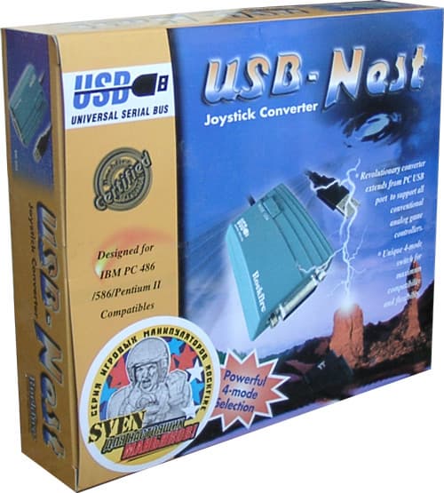 Вот уж воистину, изделие для маньяков! Только законченным маньякам-игрунам может понадобиться игровой порт на компьютере, им не оснащенном. Лично мне, в первую очередь, подумалось о ноутбуках, так как именно в них, чаще всего, этот порт отсутствует. Ну и кому придет в голову играть на ноутбуке? Хотя, есть у меня пара друзей, у которых кроме ноутбука ничего и нет. Наверное, именно для таких людей и создан конвертер USB-Game Port, продаваемый под маркой SVEN и зовущийся USB-Nest. Вот его-то мы сегодня и рассмотрим.