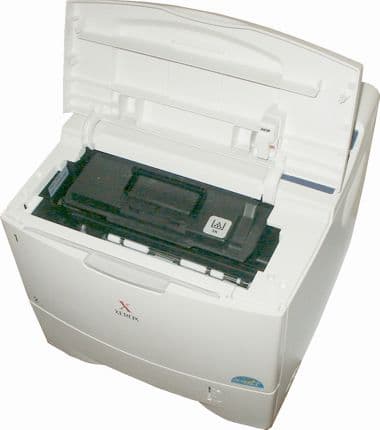 Печатный картридж вставляется в отсек, доступный после открытия верхней крышки принтера. Замена картриджа очень проста и может производиться даже пользователем, далеким от тонкостей вопросов техобслуживания.