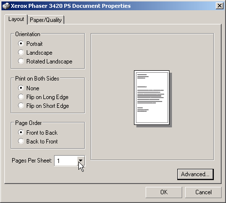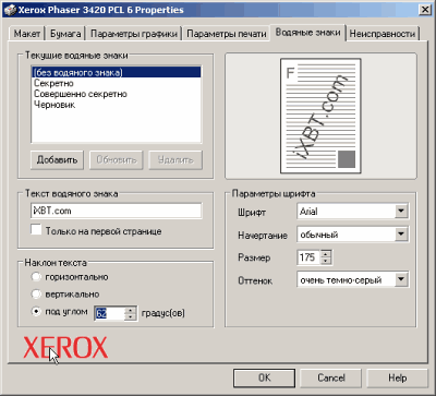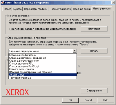 Представленный на тестирование принтер Xerox Phaser 3420 тестировался совместно с системой под управлением Windows XP, как с драйвером PCL6, так и с версией эмуляции PostScript.