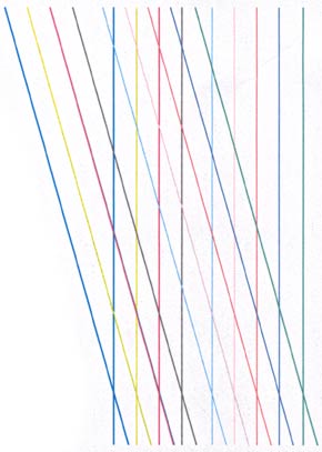Безжалостный прогон принтера сквозь строй наших тестовых шкал — вот испытание для настоящего мужчины! И первое, что сразу бросается в глаза, — принтер заметно пачкает бумагу. Вместо белого лист бумаги становится слегка серым, что не может не сказаться на цветопередаче. Виновницей этого «бумагомарательства» является, скорее всего, изношенность светочувствительного барабана. Уверенности в этом прибавляет и заметное «полошение» по полю печати. Да-а… наш герой не в лучшей форме, и на это придется делать определенную скидку.