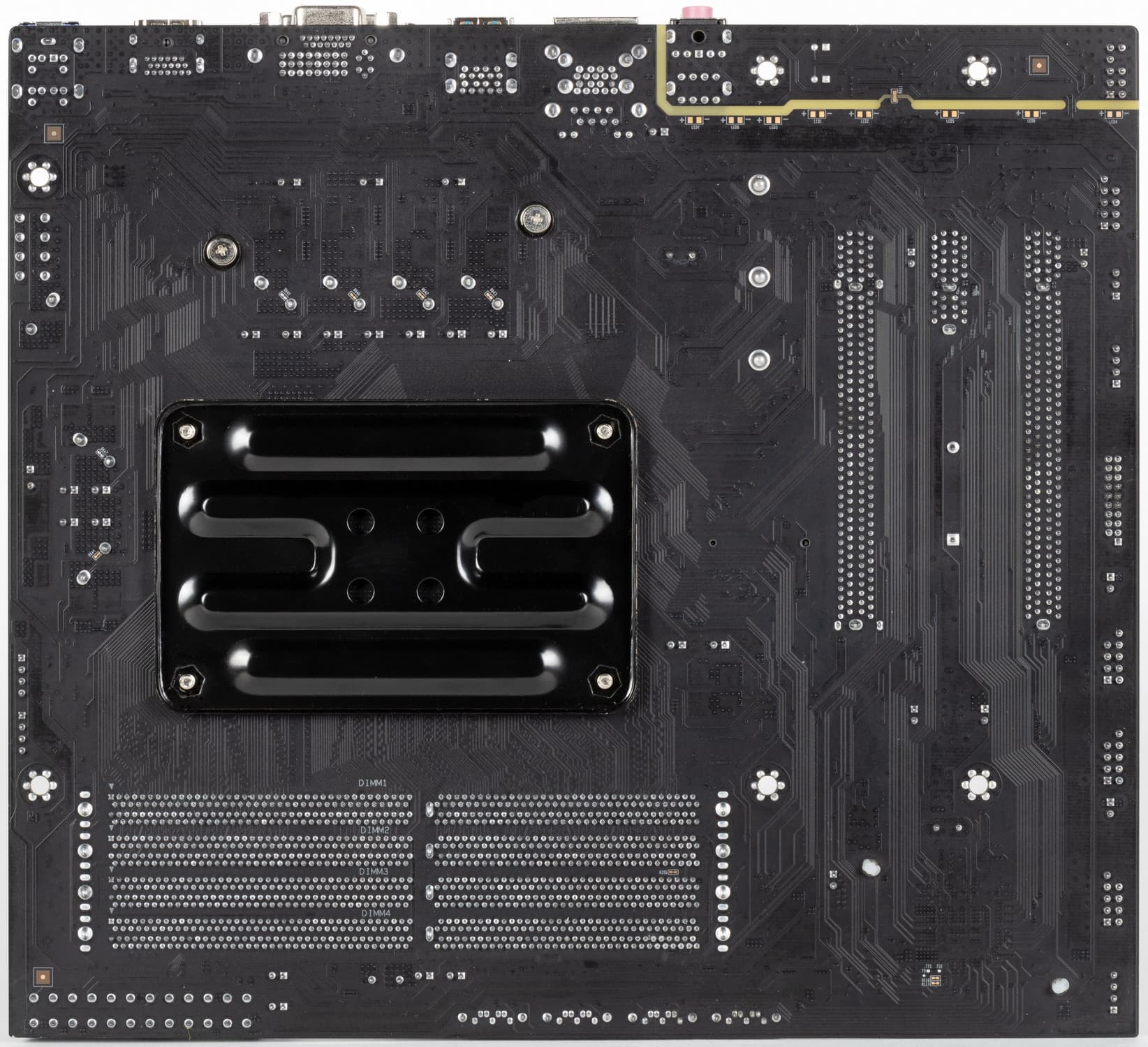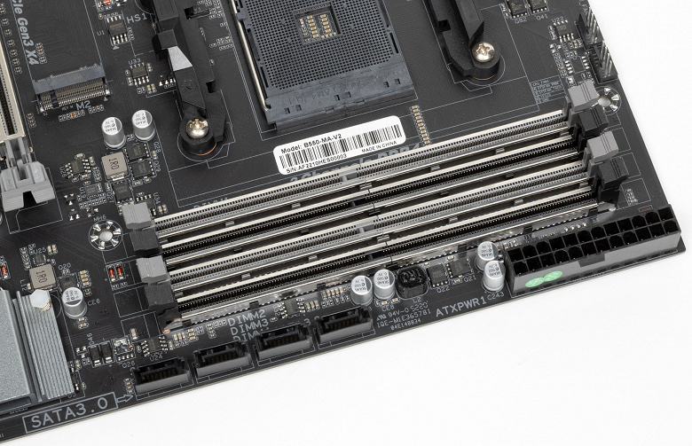 Как ни странно, но на такой малобюджетной плате слоты DIMM имеют металлическую окантовку, которая препятствует деформации слотов и печатной платы при установке модулей памяти и защищает от электромагнитных помех.