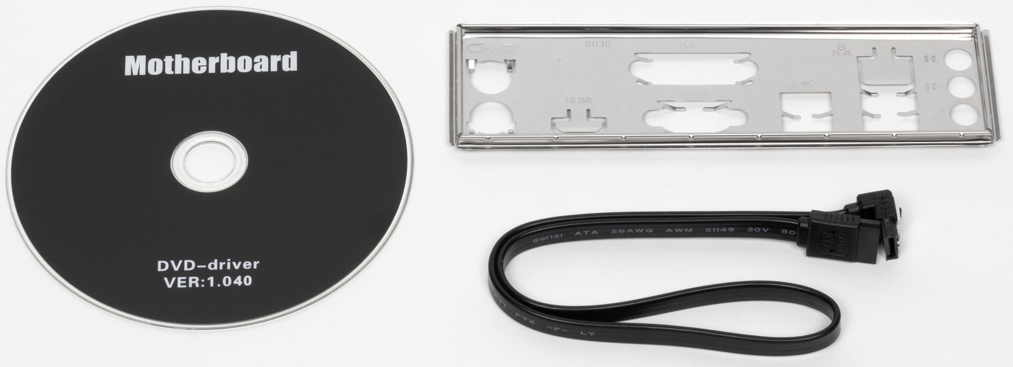 Да и комплект-то крайне скудный, что и должно быть для очень бюджетных решений: один кабель SATA, накопитель типа CD c ПО и «заглушка» на заднюю панель с разъемами.