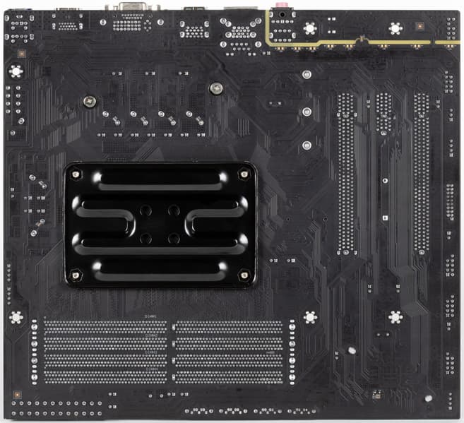 В арсенале платы есть также 4 порта SATA и 3 разъема для вентиляторов. Система охлаждения лишь удовлетворительная (блок преобразования питания VRM охлаждается не полностью и не предусмотрено штатное охлаждение накопителя в слоте M.2). Сетевые возможности очень скромны: только один проводной контроллер 1 Гбит/с, беспроводной адаптер не предусмотрен.