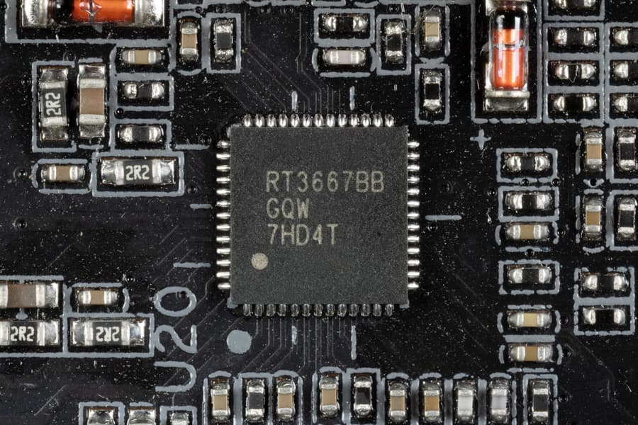 Управляет схемой питания шестифазный ШИМ-контроллер Richtek RT3667.