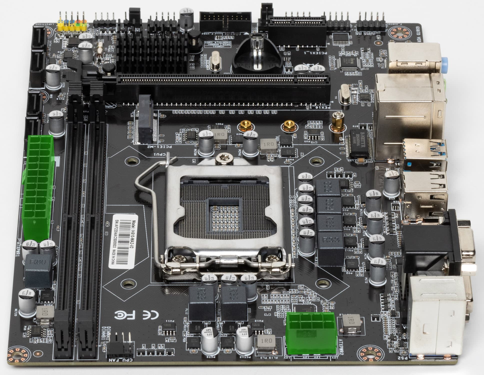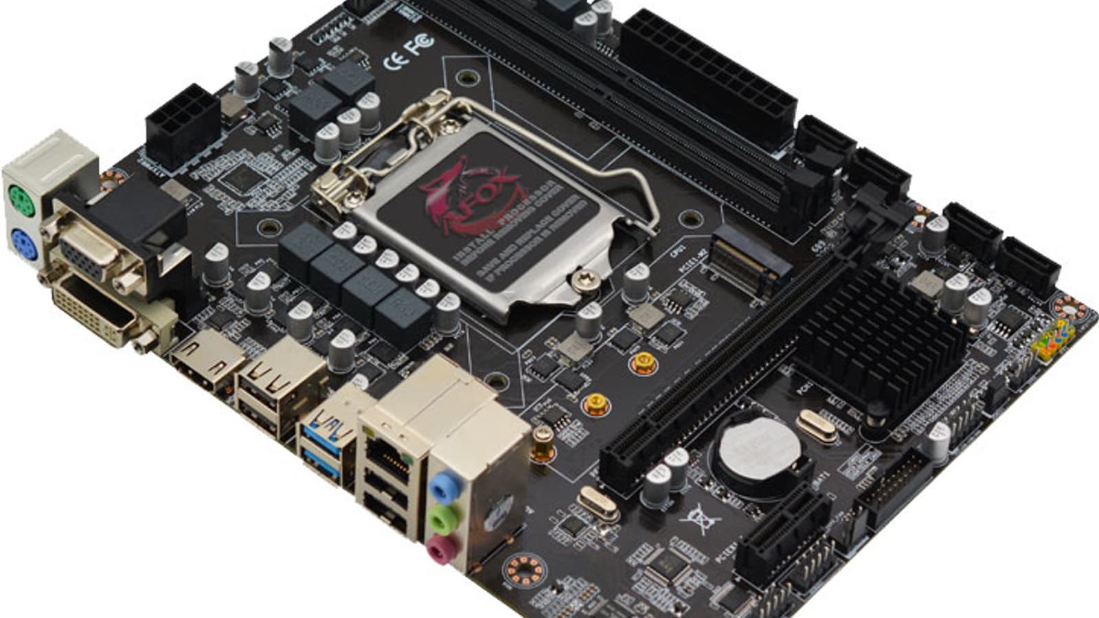 Материнская плата Afox IH510-MA2-V2 выполнена в форм-факторе Micro-ATX, имеет размеры 170×220 мм, и на ней имеются 6 монтажных отверстий для установки в корпус.