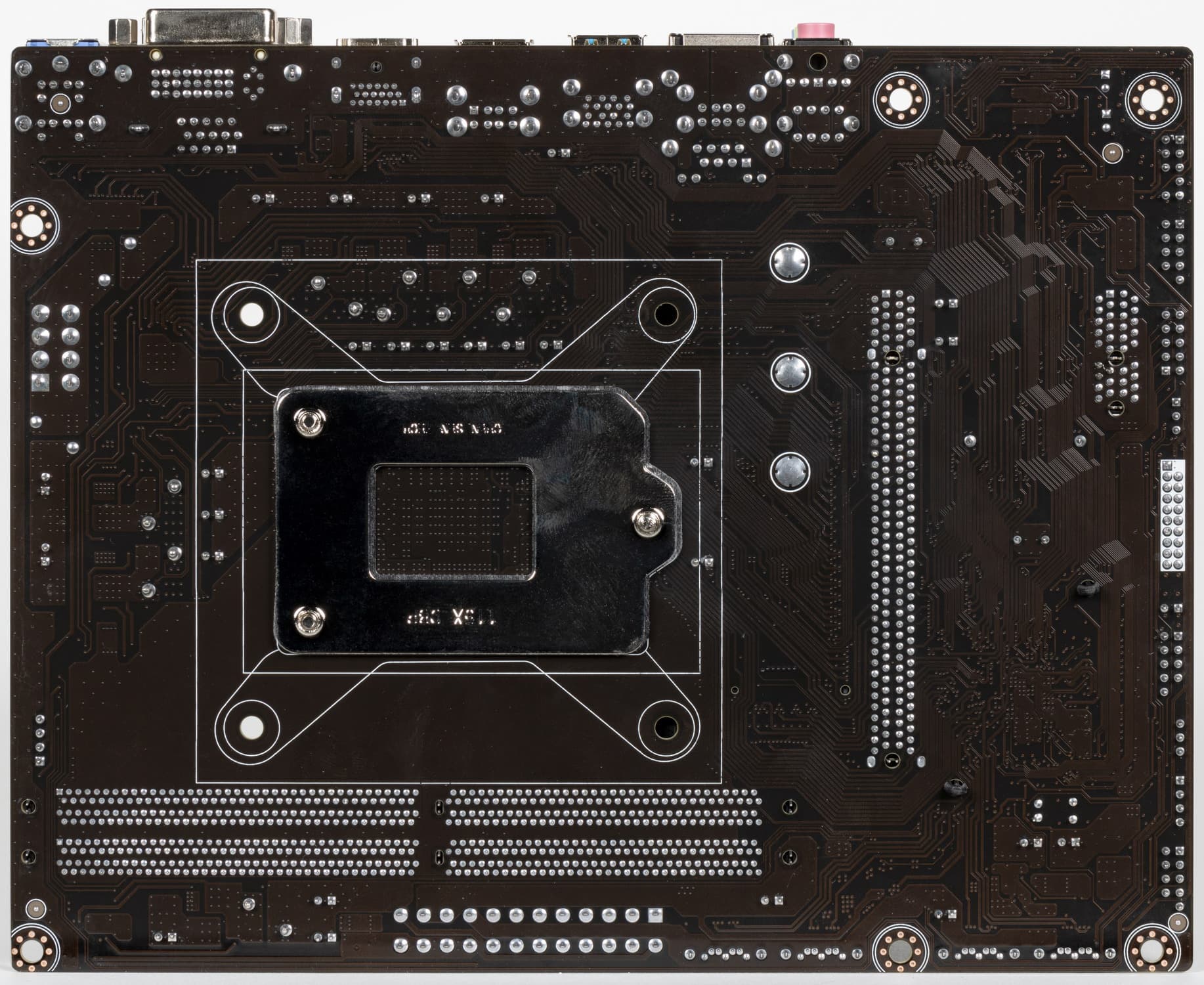 Слоты DIMM не имеют металлической окантовки, которая препятствует деформации слотов и печатной платы при установке модулей памяти и защищает от электромагнитных помех, и которая обычно всегда является составной частью флагманского набора у материнских плат.